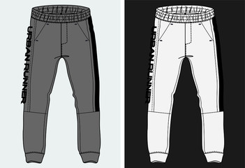 Sweat Pants Fashion Flat Sketches Technical Drawings Teck Pack Illustrator Vector Template Activewear Wall Mural Activewe Deeppurple